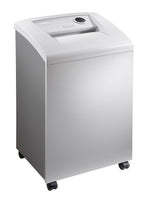 A Level 5 cross cut shredder designed for medium size office use. The E-10CT shredder features some of the most advanced safety features in the industry as well as Level 5 micro-cut for added security. This model includes an integrated air filtration system that collects and traps up to 98% of fine dust fostering a cleaner, healthier work environment. An Emergency Shutdown system that responds to voice or touch commands. In the event of an emergency, simply say "Stop" or tap the top cover of the machine, and the shredder stops immediately. An added emergency shutoff switch is located on the back of the machine as yet another level of personal safety. The 10 1/4" feed opening is reinforced with steel and contains electronic sensors that will turn the shredder off, should your fingers get too close. The sensor also detects and shuts off the machine if the sheet capacity is to be exceeded reducing jamming. The E-10CT includes an Energy Management System which places the shredder in a sleep mode when idle and completely powers down after 30 minutes of inactivity. The operator control pad includes all the functions of the shredder and notifies the user when sheet capacity is exceeded, bag is full or door is open. With an all steel cutting head and chain drive the E-10CT also features an internal Automatic Oiler. Rubber shock mounts isolate cutting head noise and vibration. An attractive fully enclosed cabinet on rolling castors provides for quiet dust-free operation.