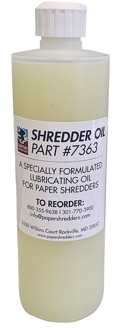 Keep your shredder running smoothly and efficiently with Capital Shredder's premium shredder oil. Our #7363 shredder oil is designed for shredders without auto-oilers. Specially formulated to reduce friction and prevent buildup on cutting blades, this oil is essential for maintaining peak performance and extending the life of your machine.